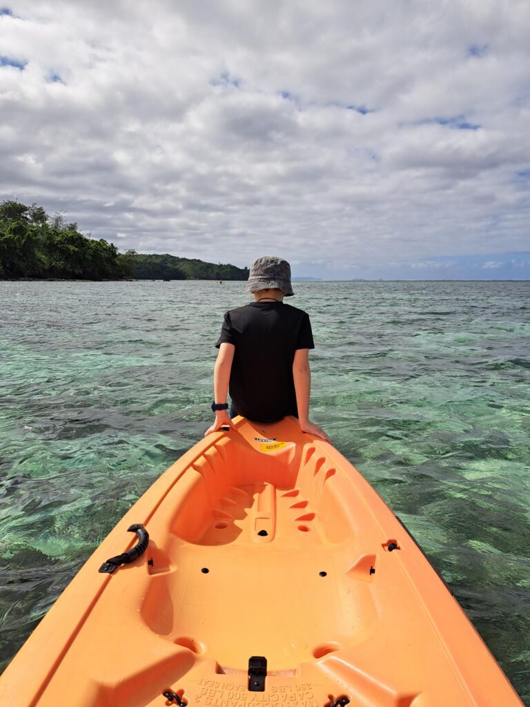 Our family is not the kind that can sit by the pool all day. Our first week was on Mana Island where we slept in a cottage 20 metres from the ocean. The cottage was part of the local community with the school behind us. Plenty of snorkelling the reef, jumping off the rocks into the ocean, paddle boarding, exploring the island and the spots Survivor had setup and just taking it all in. The ocean is so clear that you can see the ocean floor even if you are 50 metres from shore.