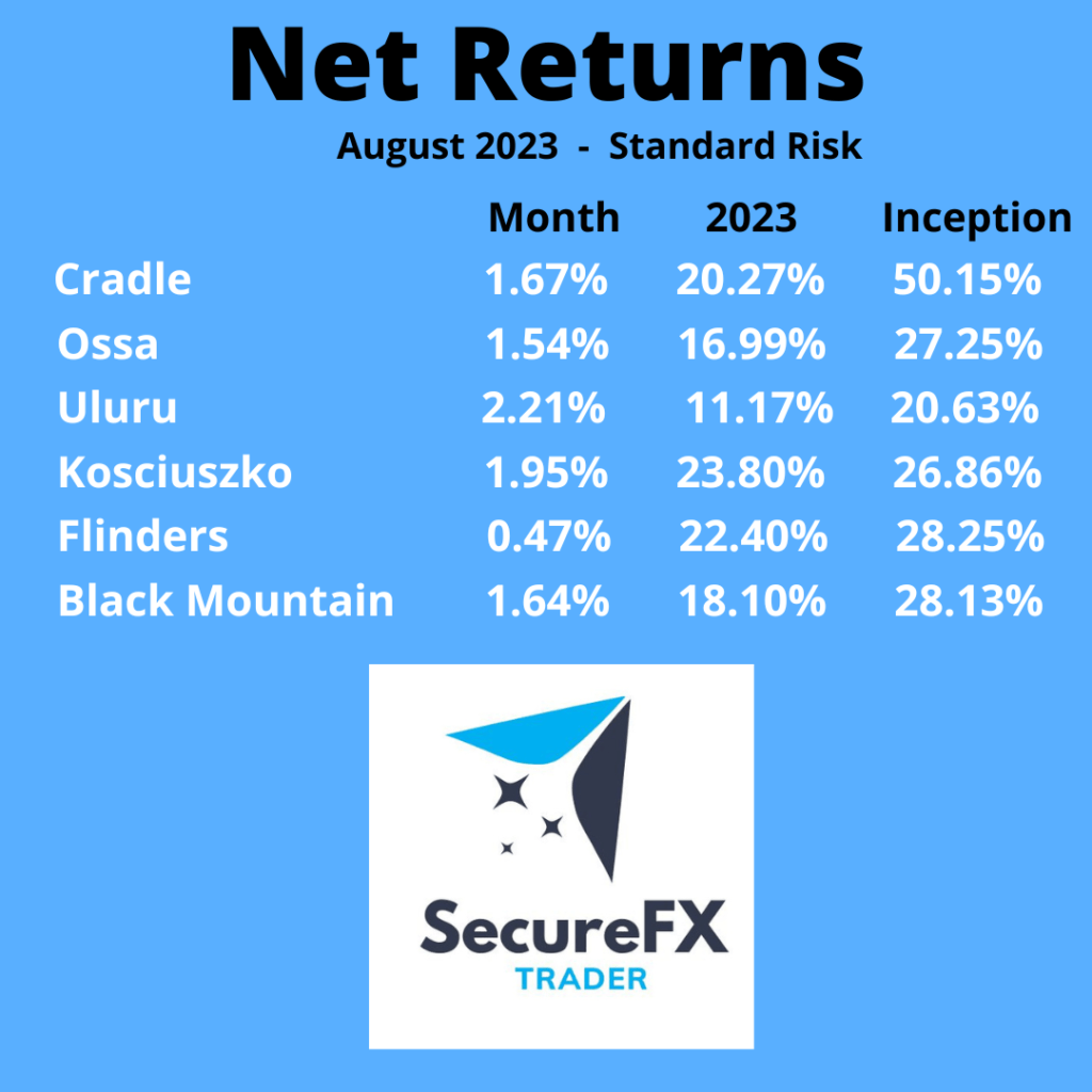 The reason for some lower returns for August can be contributed to the Jackson Hole Symposium which was held on the 24 to 26 August. This is a big deal in the finance world and can make large movements in the currency markets depending on what is said.
