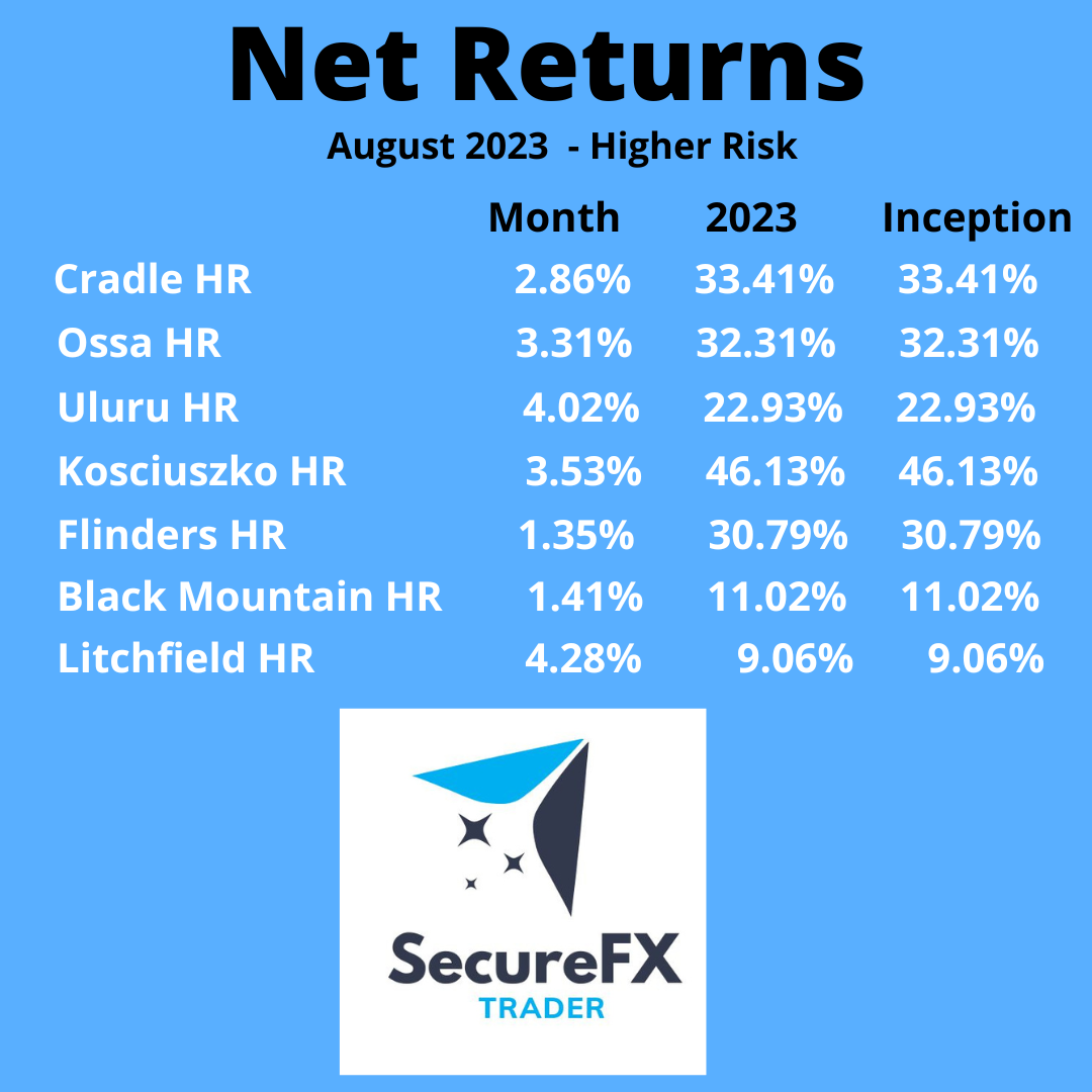 The reason for some lower returns for August can be contributed to the Jackson Hole Symposium which was held on the 24 to 26 August. This is a big deal in the finance world and can make large movements in the currency markets depending on what is said.