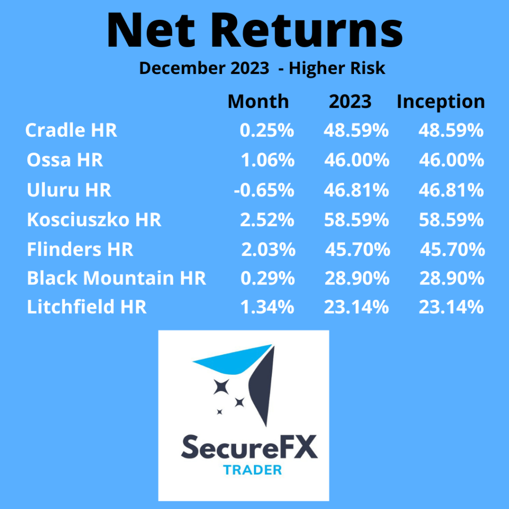 Please find below the net return for December 2023 for standard and higher risk strategies.