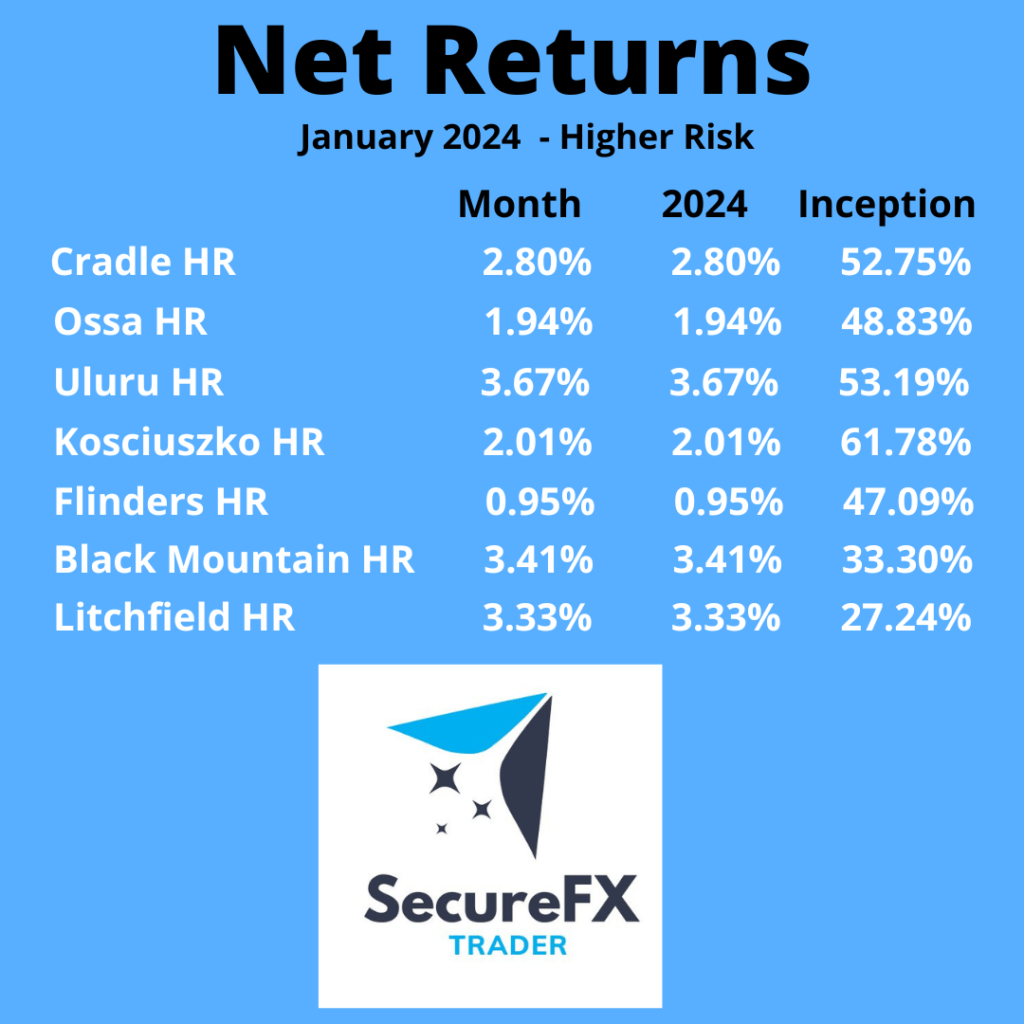 For 2024 we have the same aims for our strategies – between 20% to 30% yearly returns after fees on our standard risk strategies and over 45% on our higher risk strategies.