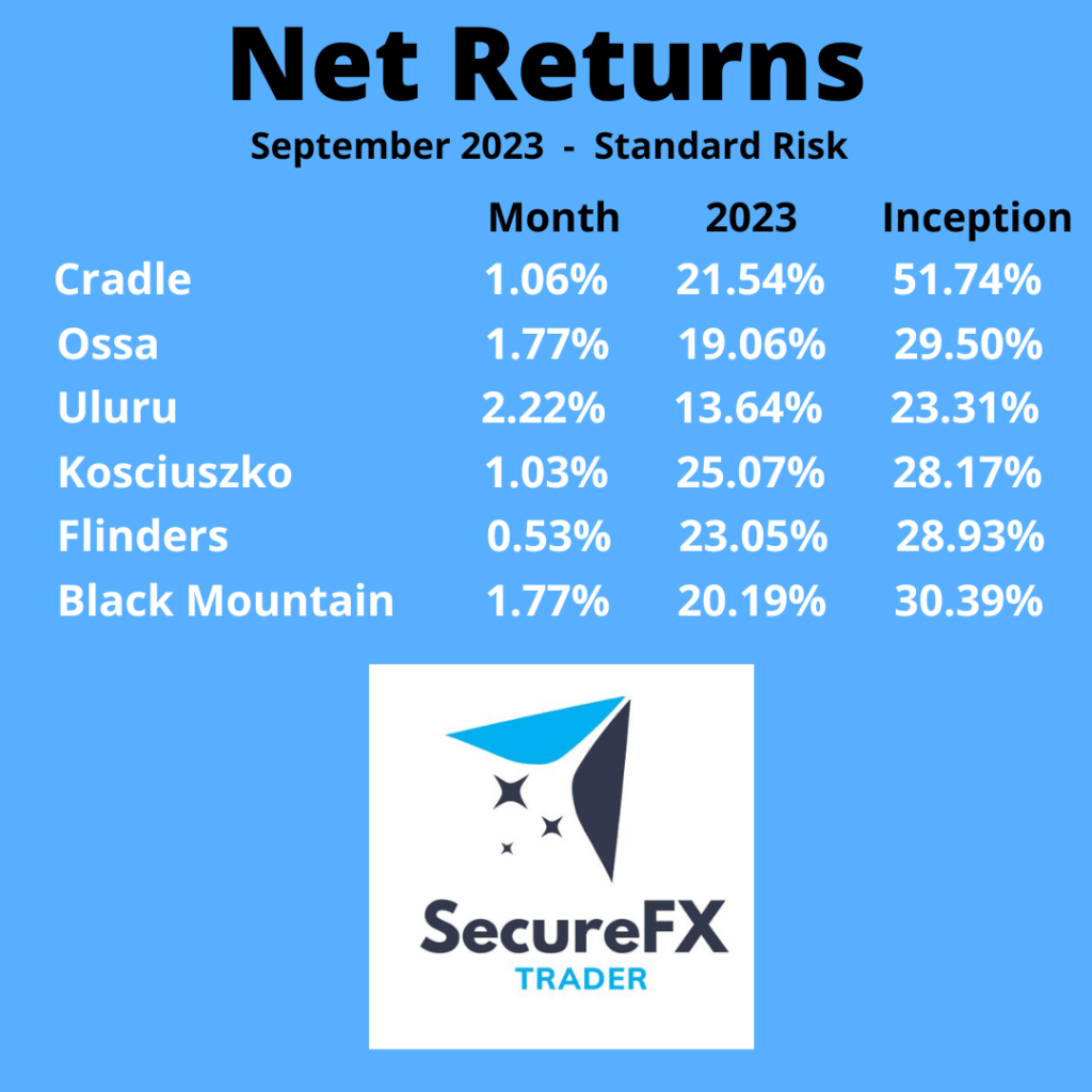 Due to the lack of trading for the month and carrying open trades the returns for September are low.